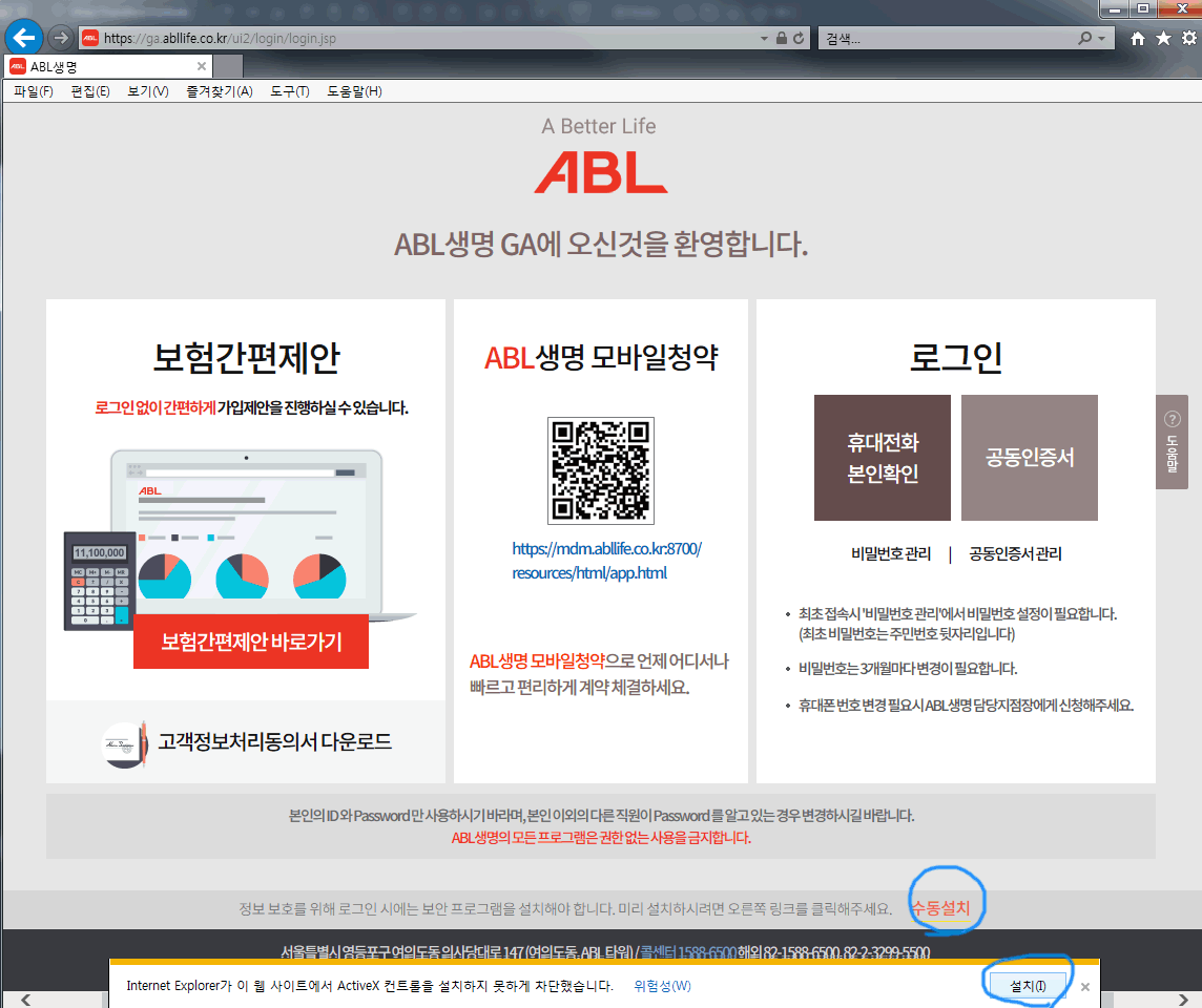 사실 ABL생명은 다뤄보질 않았습니다만... 영업포털 싸이트 설치는 어짜피 모두 비슷하니까요 ~