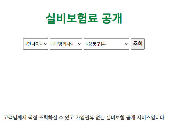 접속하시고 "실비보험료 계산" 버튼을 누르시면 아래 화면처럼 나오네요