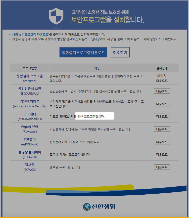 신한생명 GA영업지원 포털사이트 설치방법입니다