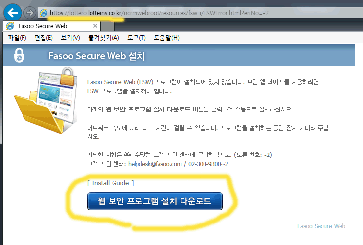 자동으로 설치가 안되면 노란색으로 동그라미 된 [웹보안 프로그램 설치 다운로드] 누르시고 설치진행하시면 됩니다