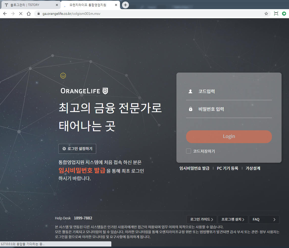 오렌지라이프 영업포탈 url 입니다