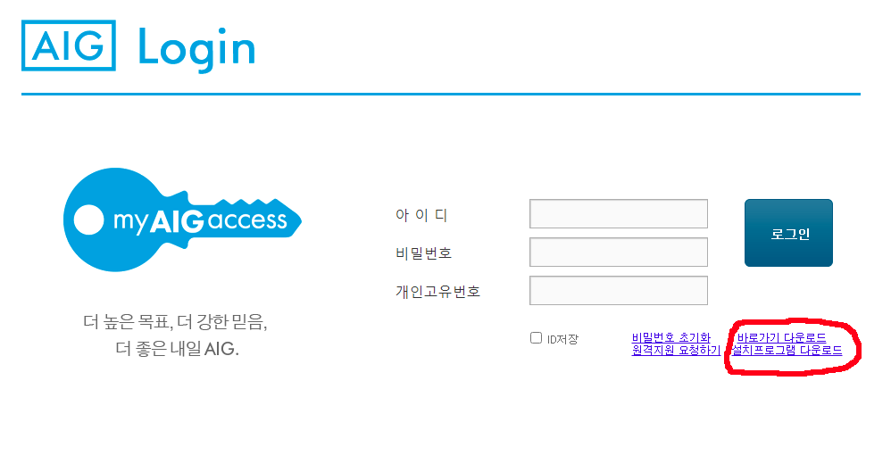 누르시면 이렇게 AIG 로그인 화면이 나옵니다