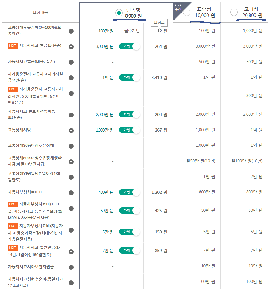 실속형은 1만원 이하로 가입이 가능하시네요 ^^
